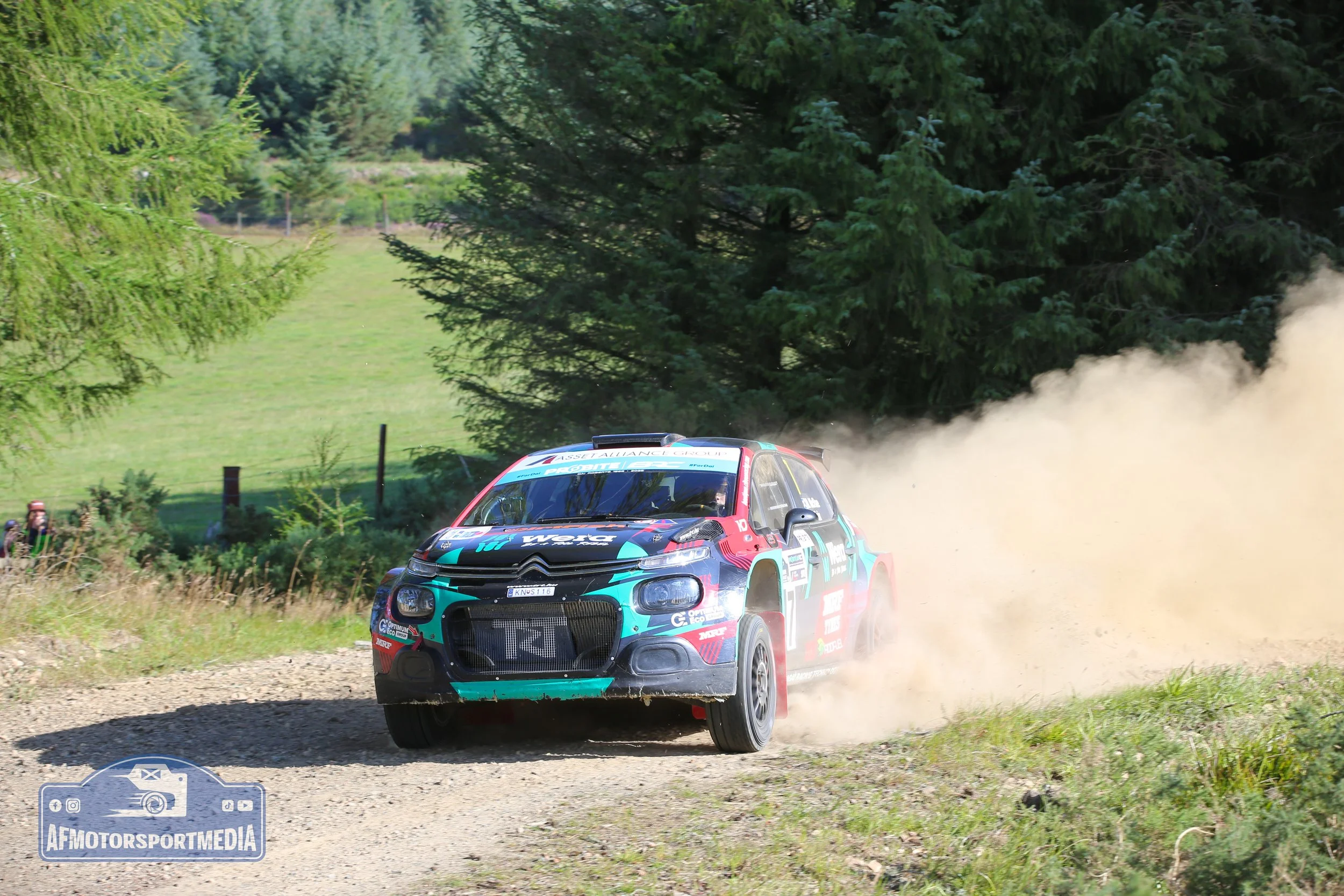 Teammate Garry Peason was also hampered as the dust being kicked up by Jurgenson’s stricken Fiesta was not getting time to clear at all as he and co driver Hannah McKillop closed on the slower car. Dust was slowing everyone to some extent though, and Creighton’s time proved to be more than 9 seconds quicker than the next best crew. Max McRae and Cameron Fair surprised a few by going 2nd in the Citroen C3 ahead of Evans, Pearson, Callum Black, Johnny Greer. Matthew Hirst and the fastest SRC crew Scott Beattie and Peredur Davies – a full 21 seconds slower then Creighton.